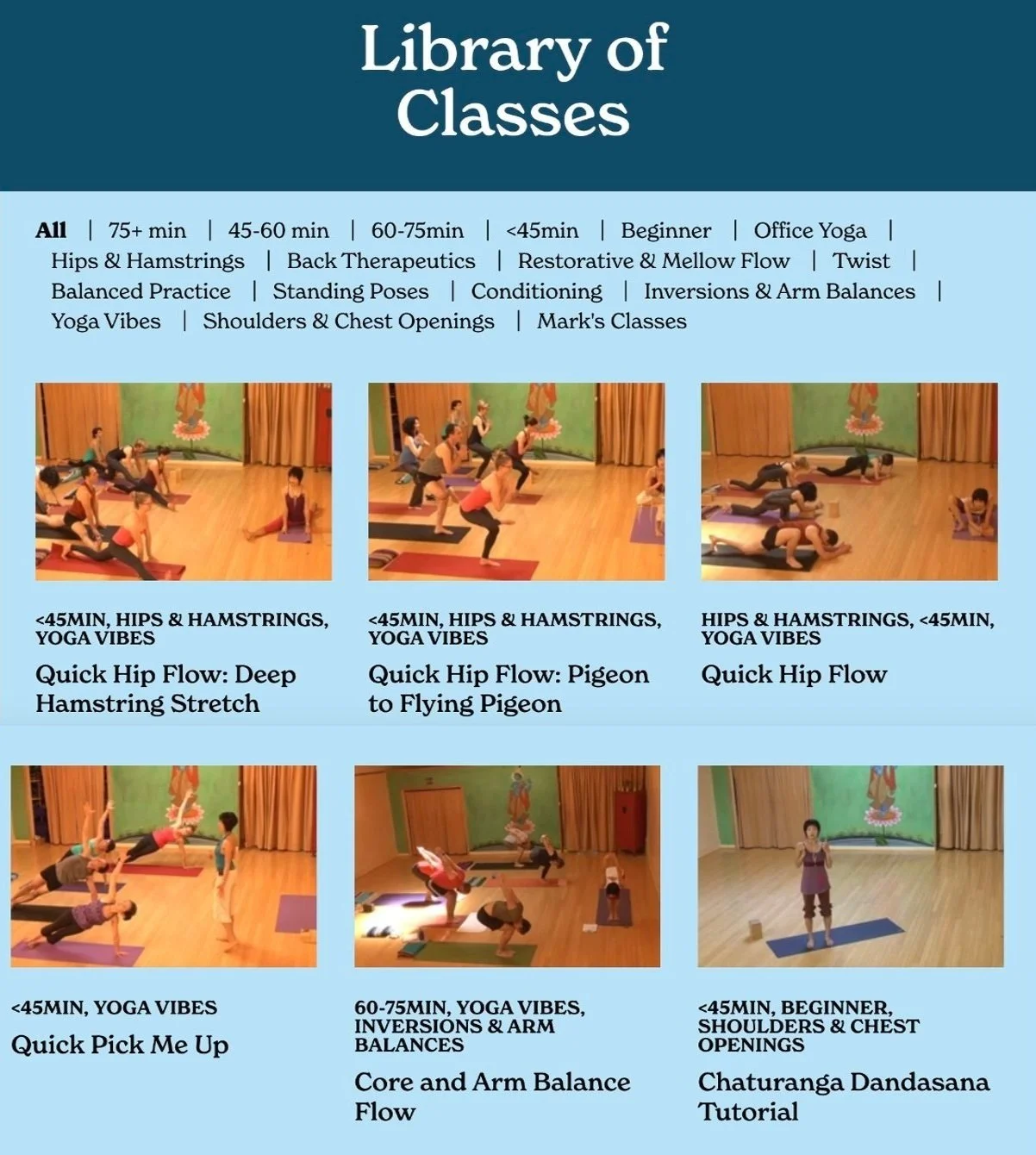 Unlimited access to recorded classes for all levels, with a variety of focuses and durations